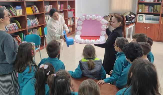 El pasado lunes 11 de marzo, las alumnas de 2º de Higiene Bucodental realizaron un Taller de Higiene y Salud Bucodental para el alumnado de Primero de primaria del Colegio Parroquial Don José Lluch de Alboraya, el cual estuvieron preparando anteriormente en la asignatura de Educación para la Salud Oral.