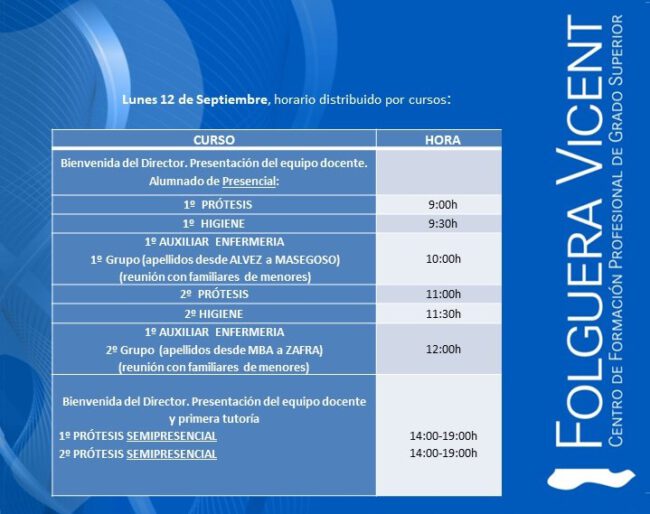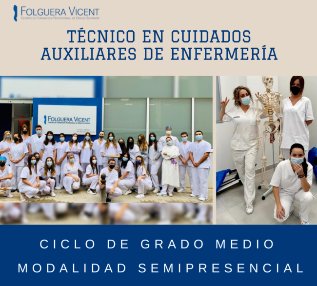 Tenemos el placer de anunciar que la Consellería de Educación, Cultura y Deporte de la Comunidad Valenciana ha autorizado al Centro de Formación Folguera-Vicent para impartir el ciclo formativo de grado medio en Cuidados Auxiliares de Enfermería en la modalidad Semipresencial a partir del próximo curso 2022-2023